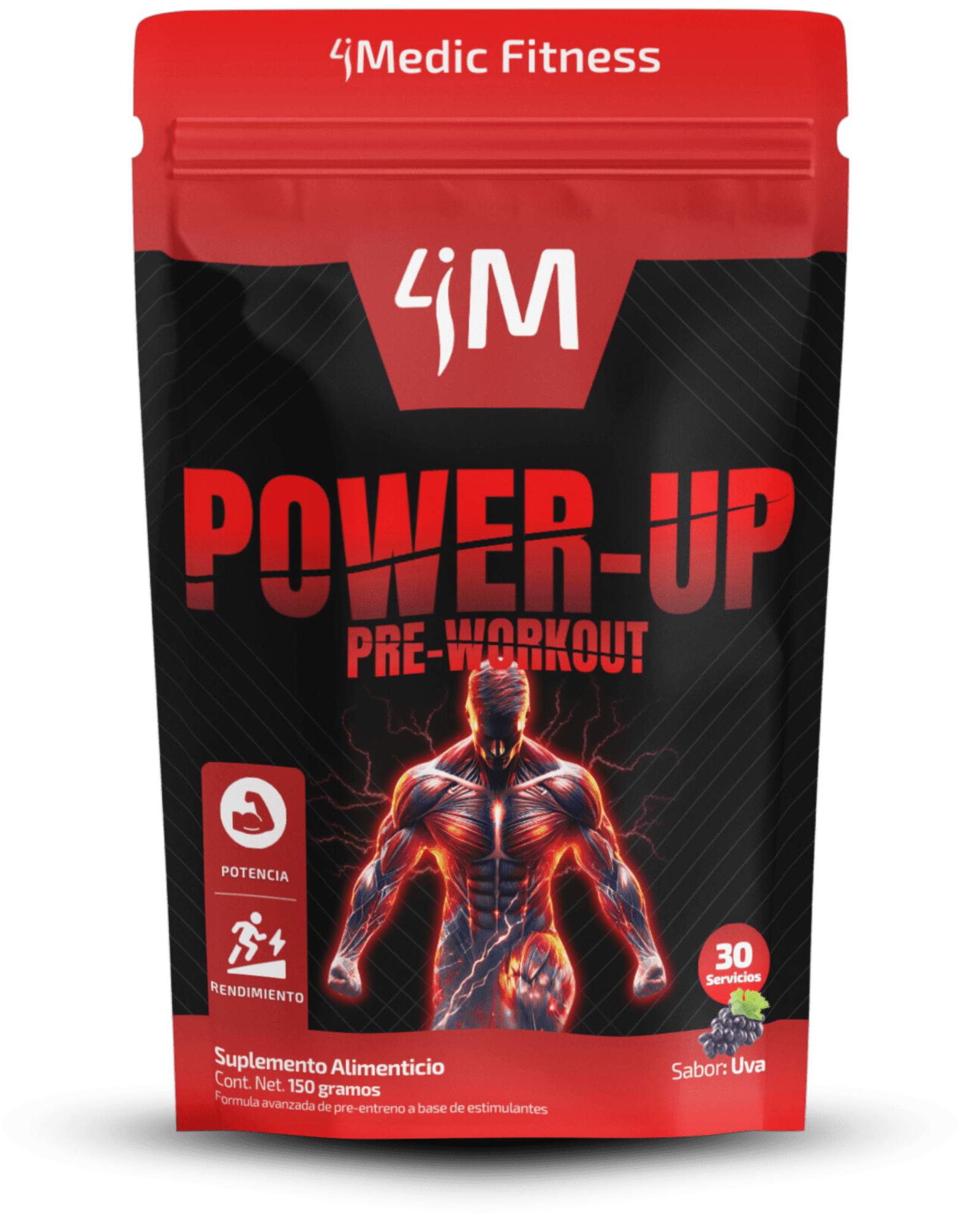 Explosión de Poder (Power-Up): Antes de tocar el hierro, Power-Up satura tus músculos con energía limpia y vascularidad extrema. Sin “crashes”, solo enfoque láser para dominar cada serie. 🔋🏋️♂️