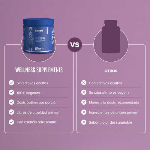 Birdman Berberina HCL 900 mg es un suplemento premium en cápsulas veganas que apoya el metabolismo, la digestión y el control de la glucosa en sangre. Elaborado con fórmula limpia sin aditivos ocultos, este extracto natural de la raíz de Berberis aristata es reconocido por sus beneficios en la salud metabólica, cardiovascular y digestiva.
