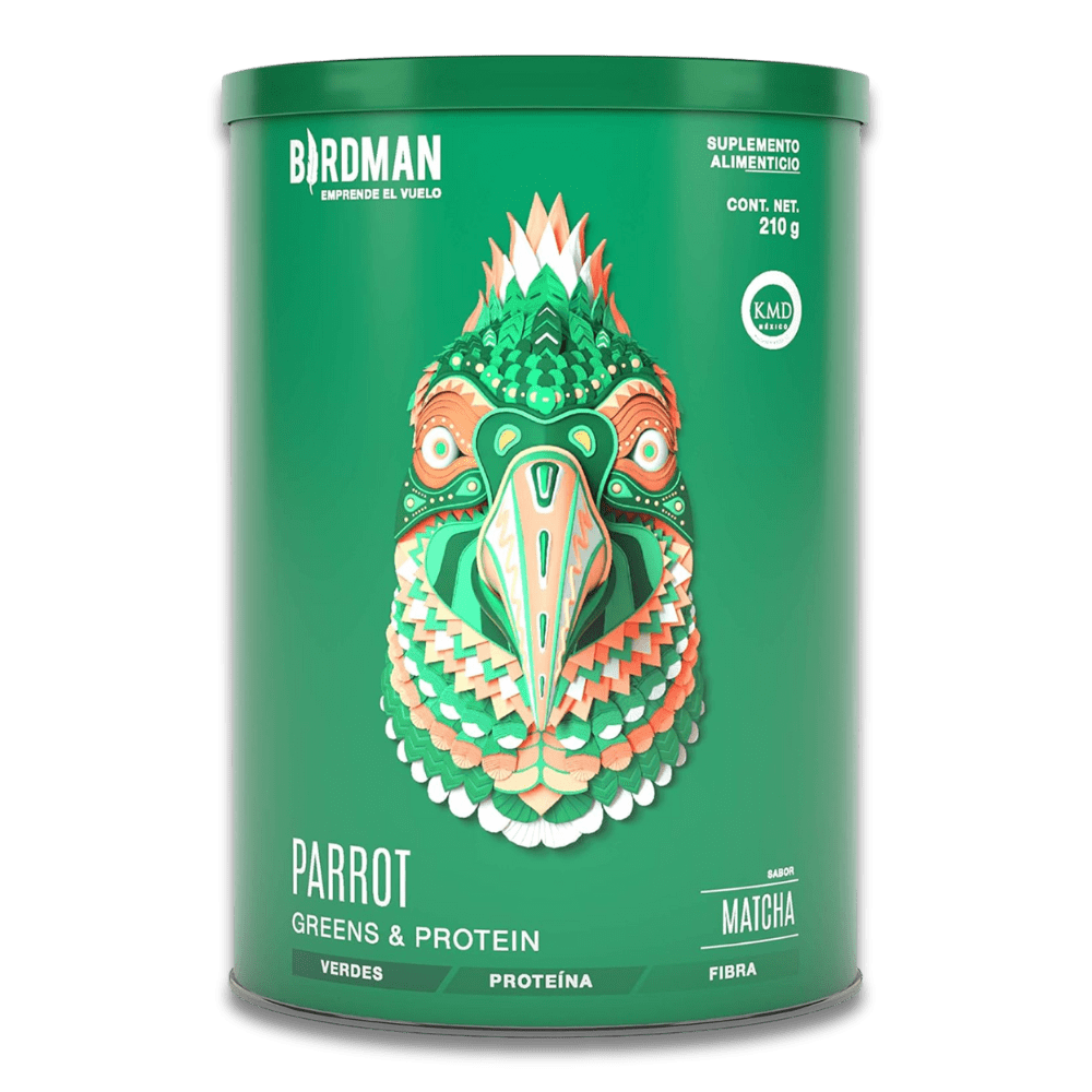 Birdman Parrot Greens & Protein es un suplemento vegano en polvo que combina proteína vegetal, 11 superverdes, fibra y vitaminas esenciales. Apoya la energía, digestión y bienestar diario en una fórmula práctica y deliciosa.
