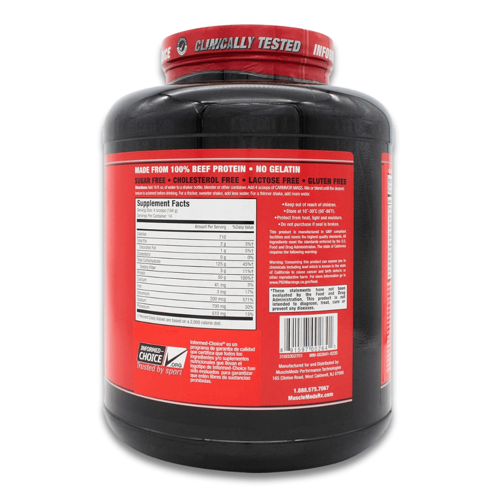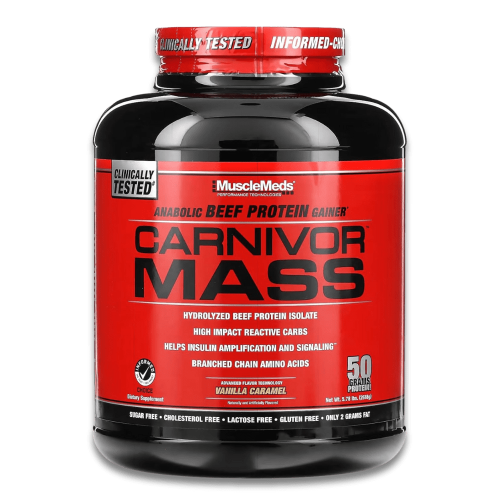 MuscleMeds Carnivor Mass 2.716 kg es un ganador de peso premium diseñado para quienes buscan aumentar volumen, fuerza y masa muscular de manera efectiva 💪🔥. A diferencia de otros mass gainers, su fórmula se basa en proteína de carne hidrolizada 100% pura, carbohidratos de calidad, creatina y BCAA’s, ofreciendo una nutrición avanzada para apoyar los entrenamientos más exigentes.